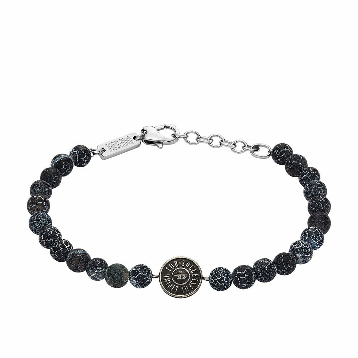 Diesel DX1464040 er mere end et armbånd – det er et statement. Skabt til den moderne, selvsikre mand, der vil signalere styrke, stil og succes uden at sige et ord. De perleformede beads kombineret med det ikoniske D-logo og inskriptionen “For Successful Living” giver et eksklusivt, edgy udtryk, der løfter både hverdags- og festoutfits.