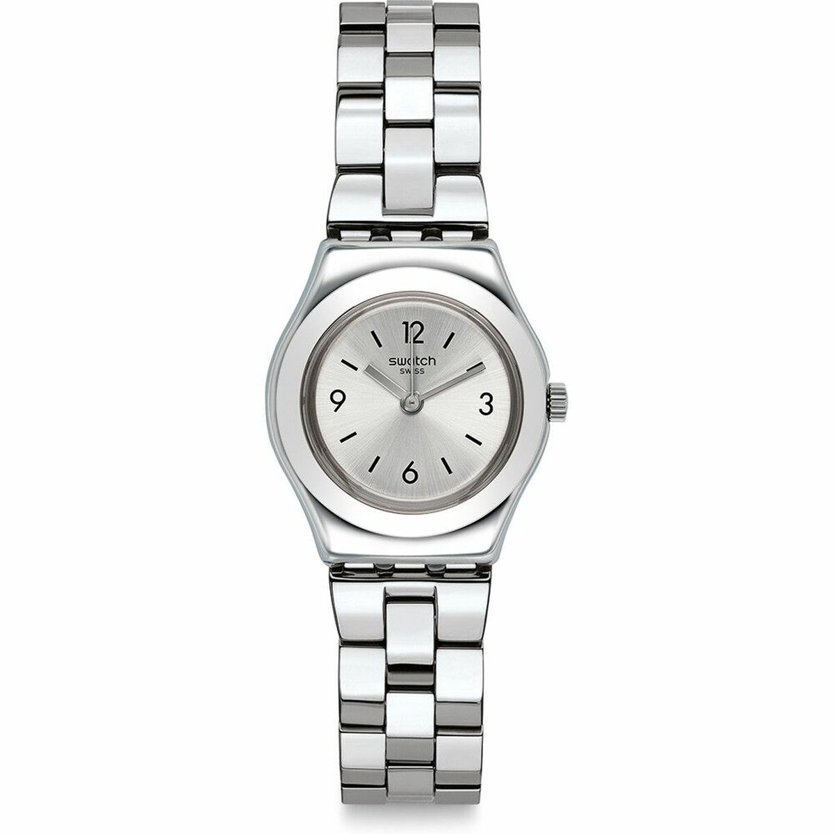 Swatch Dameur YSS300G (Gradino) er skabt til kvinder, der ønsker et feminint og moderne udtryk uden at gå på kompromis med komfort. Det sølvfarvede design i poleret rustfrit stål giver uret et eksklusivt look, mens den kompakte Ø 25 mm urkasse gør det let og elegant på håndleddet. Det solstråleprægede urskive-design sikrer et sofistikeret spil i lyset.