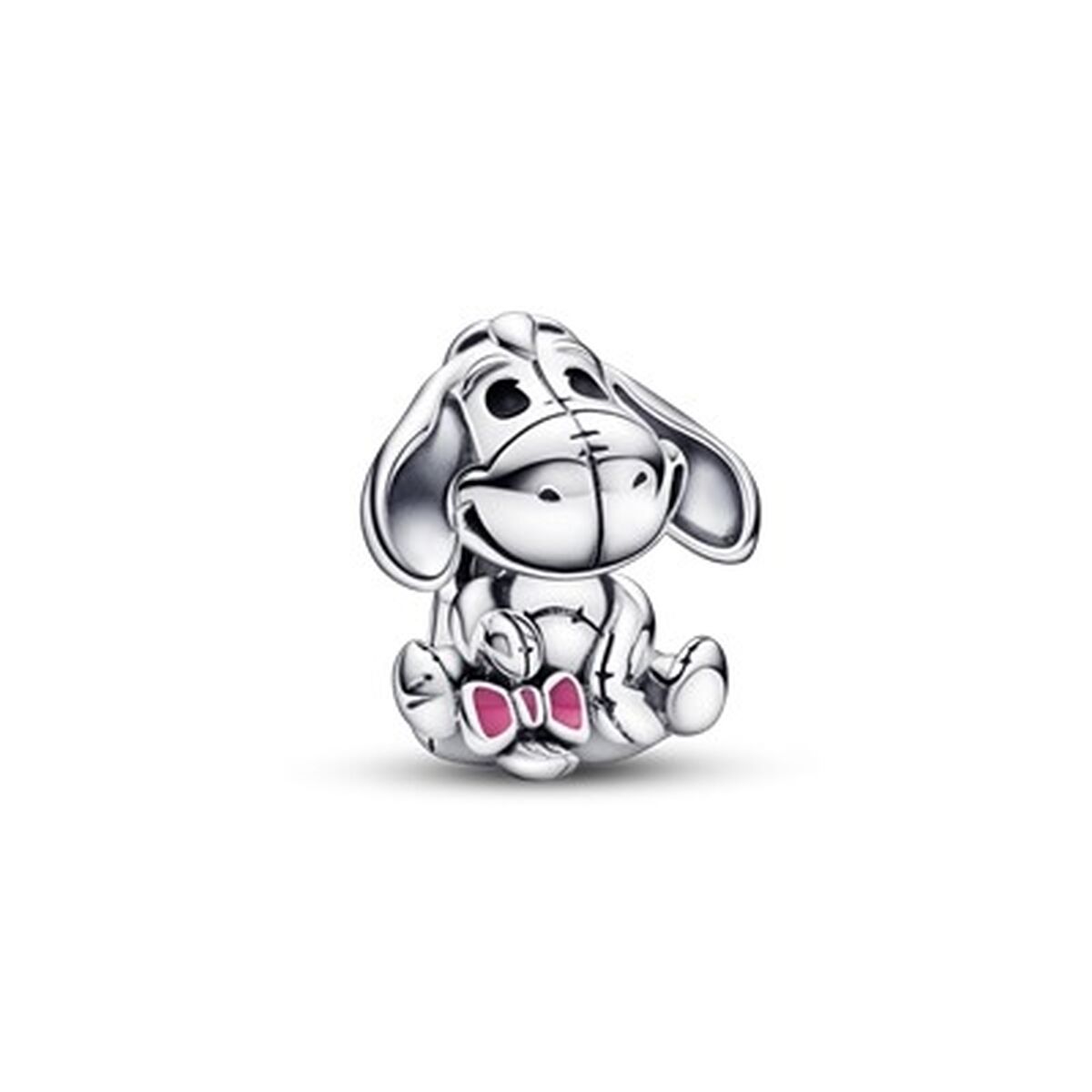 Forkæl dig selv eller en du holder af med Pandora Disney x Pandora charm **792209C01**. Den ikoniske Eeyore fra Winnie the Pooh er formet i poleret **925 sterling sølv** med fine pink og sorte detaljer, inklusive den elskede, faldne hale. En elegant charm, der tilfører personlighed, nostalgi og ægte kvalitet til dit armbånd eller din nøglesnor.