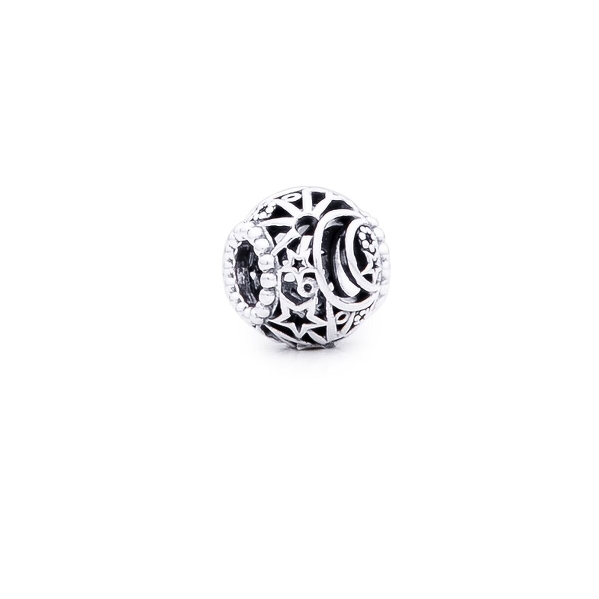 Charm’en er håndforarbejdet med perlede kanter og smukke cut-out motiver af sol, stjerner og halvmåne, som tilsammen skaber en magisk balance mellem elegance og mystik. Den passer perfekt på et Pandora Moments-armbånd og kan nemt kombineres med andre himmelinspirerede perler for et helt unikt udtryk.